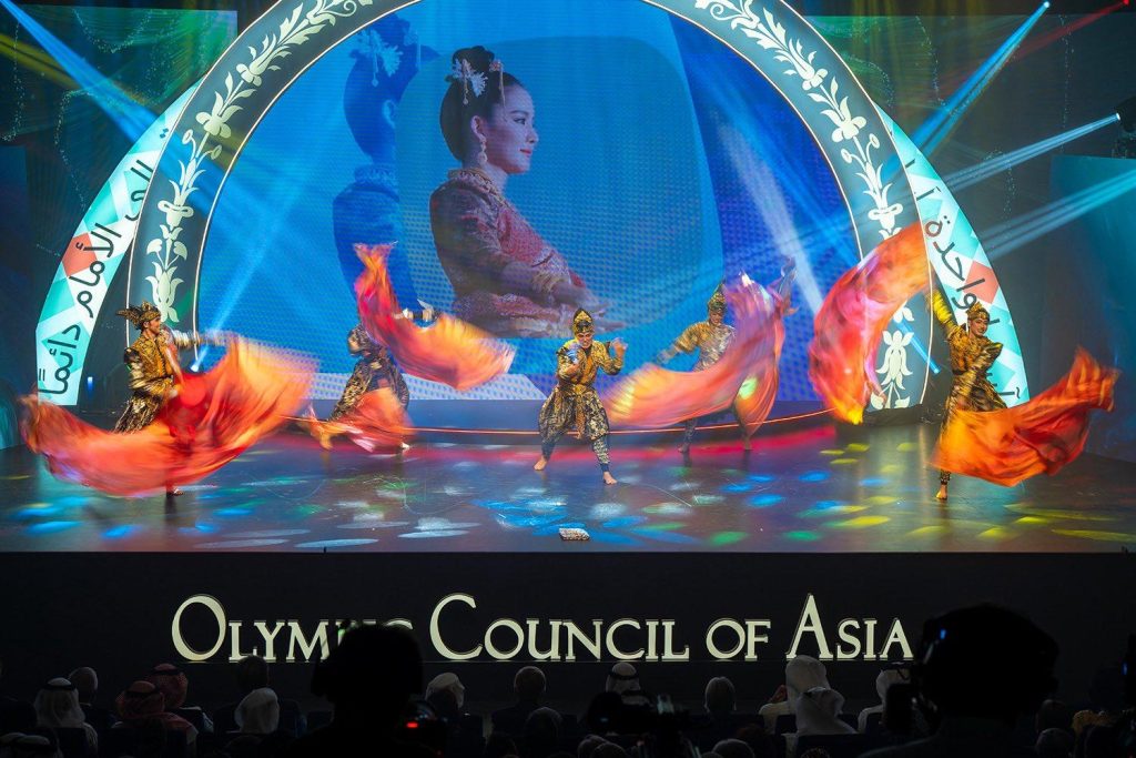 وشهد الحفل الذي حضره مسؤولي اللجنة الأولمبية الدولية والمجلس ورؤساء الرياضية الآسيوية تقديم عروض فلكلورية تمثل تراث دول الصين والهند واوزباكستان وإندونيسيا ولبنان اضافة للكويت في اشارة لتنوع التراث الاسيوي كما تم عرض فيديو لاهم البطولات الرياضية التي اقيمت بالقارة منذ 1913 ميلادي وحتى وقتنا الحاضر.