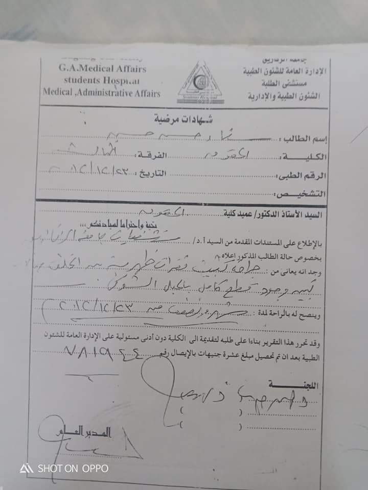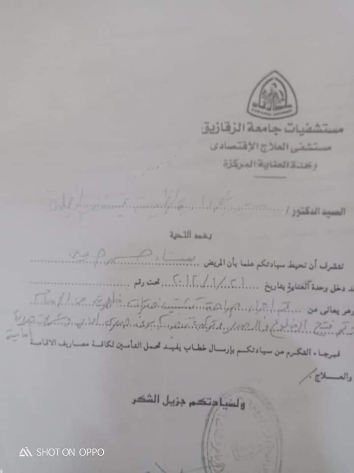 وأشارت أنها حصلت على جواب للعلاج على نفقة القوات المسلحة فى عام 2015 ، ولكن لم يكتمل الأمر ، حيث علمت أن لايوجد عمليات حبل شوكى تتم فى مصر وتستغيث بالرئيس عبد الفتاح السيسى بالتدخل لمساعدتي في هذا الأمر.