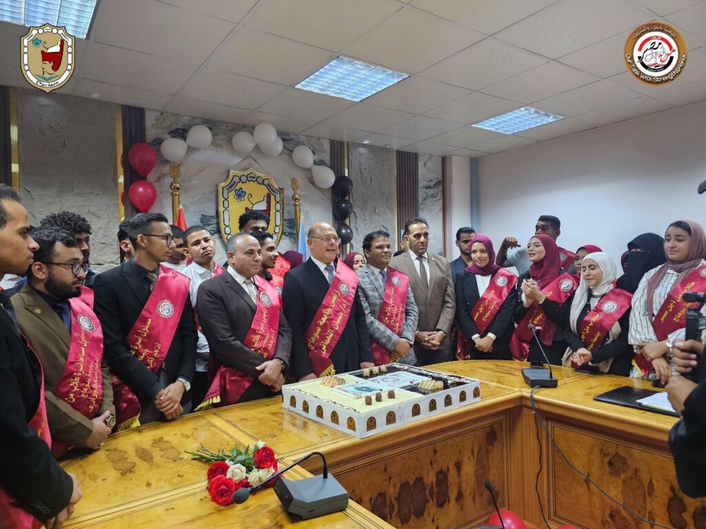 نظمت أسرة طلاب من أجل مصر بجامعة سوهاج احتفالية كبرى ومتميزة بمناسبة بدء العام الدراسي الجديد، في بادرة تعكس الروح الإيجابية والانتماء للجامعة والوطن، حيث قدمت الأسرة تهنئة خاصة لقيادات الجامعة، وعلى رأسهم الأستاذ الدكتور حسان النعماني، رئيس الجامعة، بحضور الأستاذ الدكتور خالد عمران، نائب رئيس الجامعة لشئون خدمة المجتمع وتنمية البيئة ورئيس أسرة طلاب من أجل مصر، والدكتور محمود خليل، المستشار الإعلامي والاتصال السياسي للجامعة ونائب رئيس الأسرة.